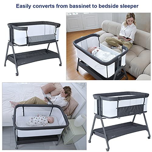 Joymor 3 In 1 Baby Bedside Sleeper Bed Side With Mattress Convert To Bassinet Bedside Slee Baby Bedside Sleeper Bed Bassinet Travel Bassinet